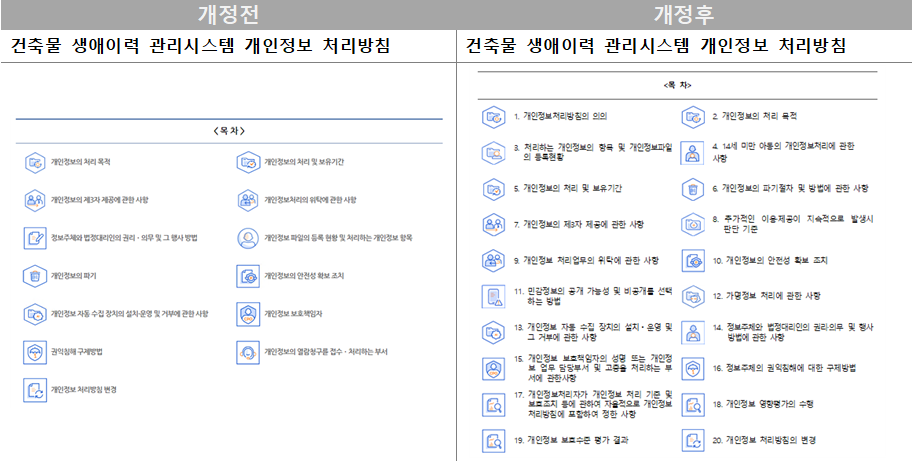 건축물 생애이력 관리시스템 개인정보 처리방침 안내
